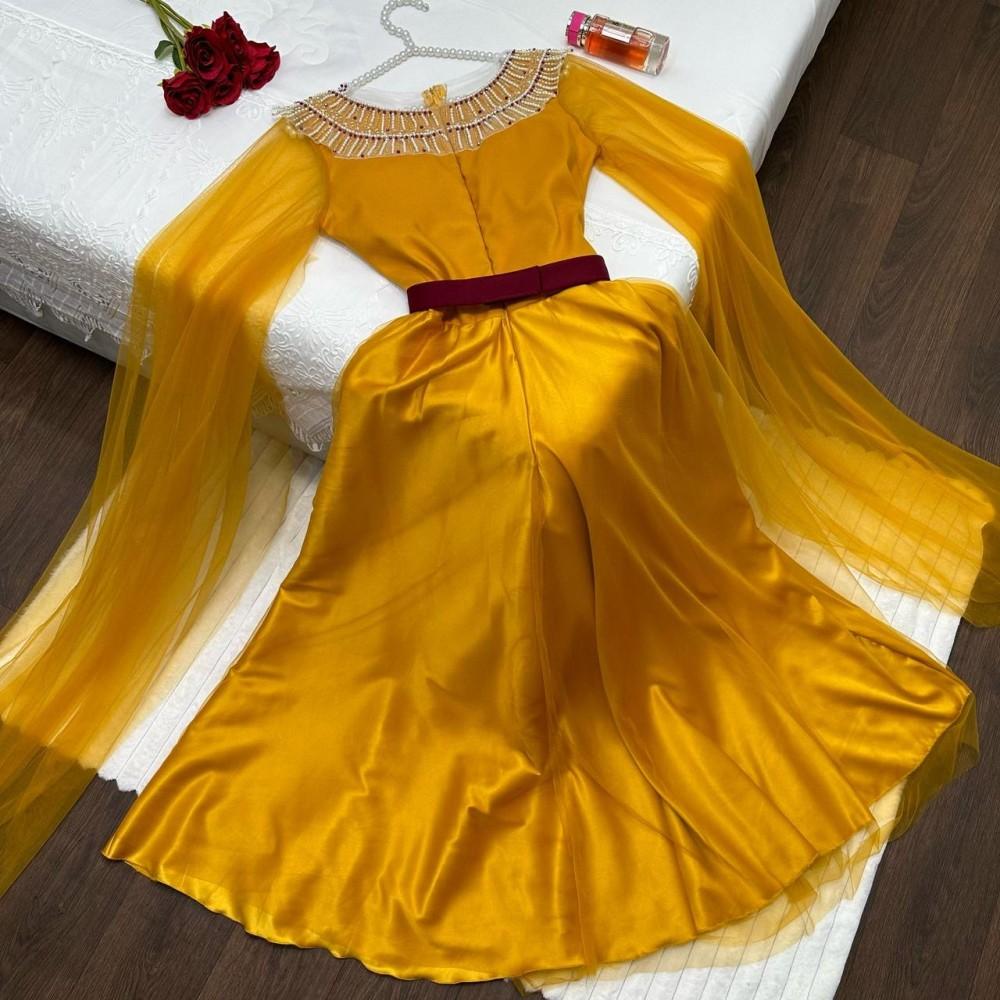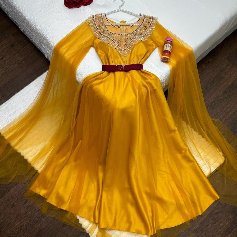 فستان اصفر تفته على تل انيق