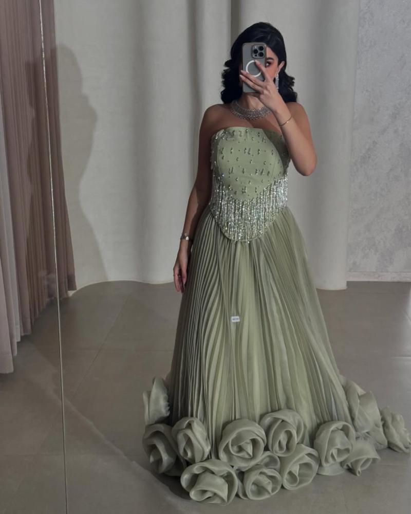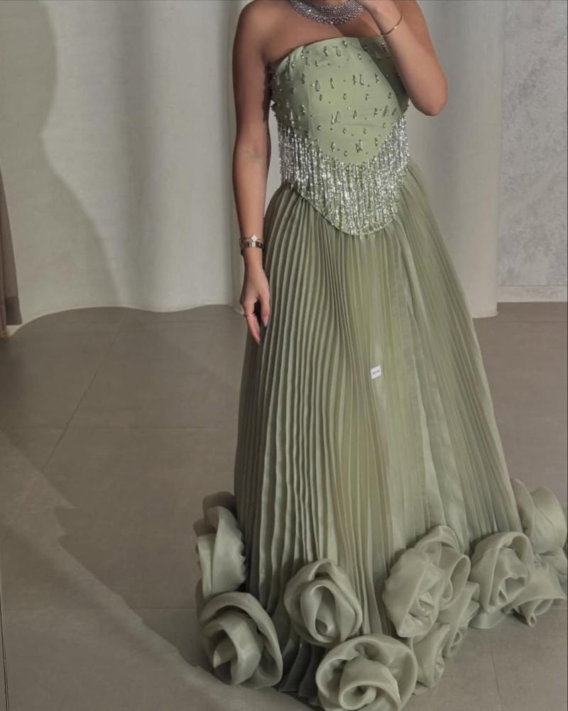 فستان سهرة خامة جازار بتطريز يدوي راقي