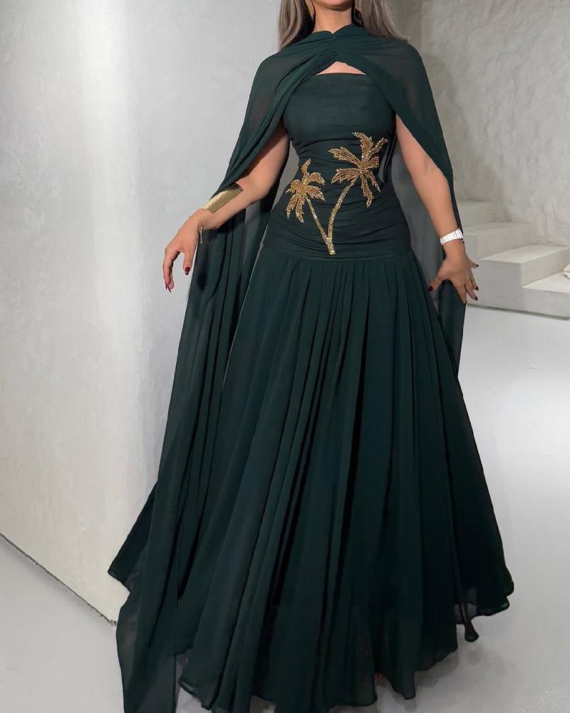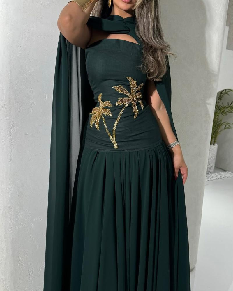 فستان سهرة خامة لنن +شيفون على تطريز نخله