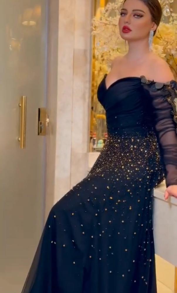 فستان سهرة راقي تطريز كمبيوتر وفصوص