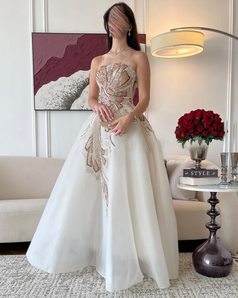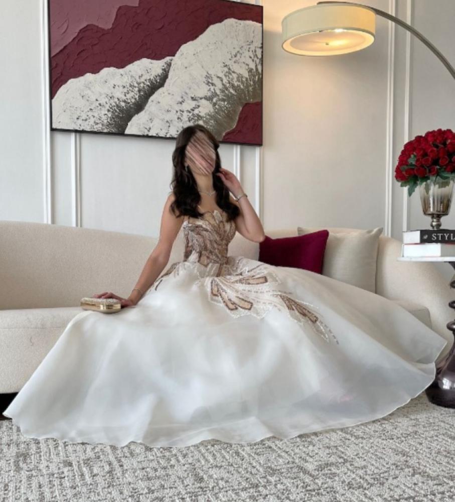 تألقي بإطلالة راقية وناعمة مع أحدث تصميم من فساتين السهرة ، المصمم بأسلوب أنثوي يجمع بين البساطة والفخامة. يتميز الفستان بقصّة صدر مكشوفة تبرز جمال الكتفين، مع تصميم ضيق يحدد الخصر ويعكس رشاقة القوام. تطريزات ناعمة متناثرة بالكريستال اللامع